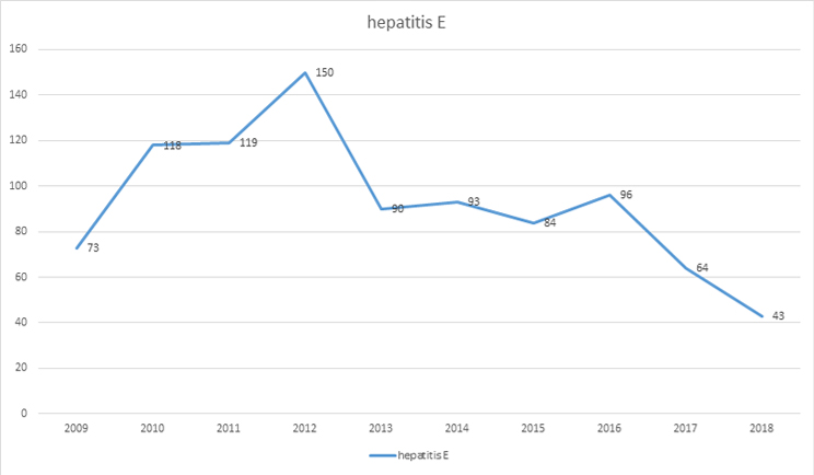 - 在香港,近年接獲呈報的戊型肝炎感染個案每年少於一百宗